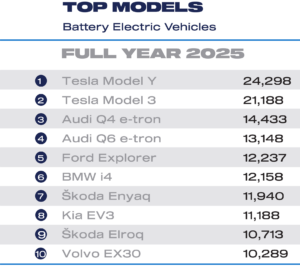 That gave electric cars a 23.4% share of the market, up significantly on 2024 and confirming the rapid shift away from petrol and diesel models.